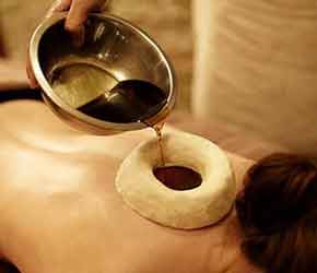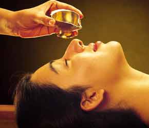 Nasya(Nasal administration of medicine) - This is administration of medicated oils, fresh juice of various herbs etc. through nasal cavities. Nose is the doorway to cranial cavity. It is classical treatment when there is accumulation of bodily humours in nose, para nasal sinuses etc. It is gold line treatment in the chronic cold, sinusitis, and migraine, various eye, and ear problems.